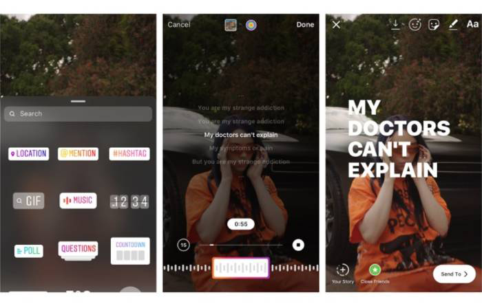Una vez desplegado este menú aparecerá la nueva opción de Música. Solo debes pulsar en ella y escoger, de la lista de canciones populares de la biblioteca, la que prefieras para armonizar tu historia. Hasta el momento, solo hay dos inconvenientes. El primero es que no todas las canciones tienen la opción de ponerles la letra, por lo que deberás escoger entre todas, las que lo permitan. El segundo, es que esta opción tiene un máximo de 15 segundos, pero puedes escoger el momento en que deseas que empiece y termine la reproducción.