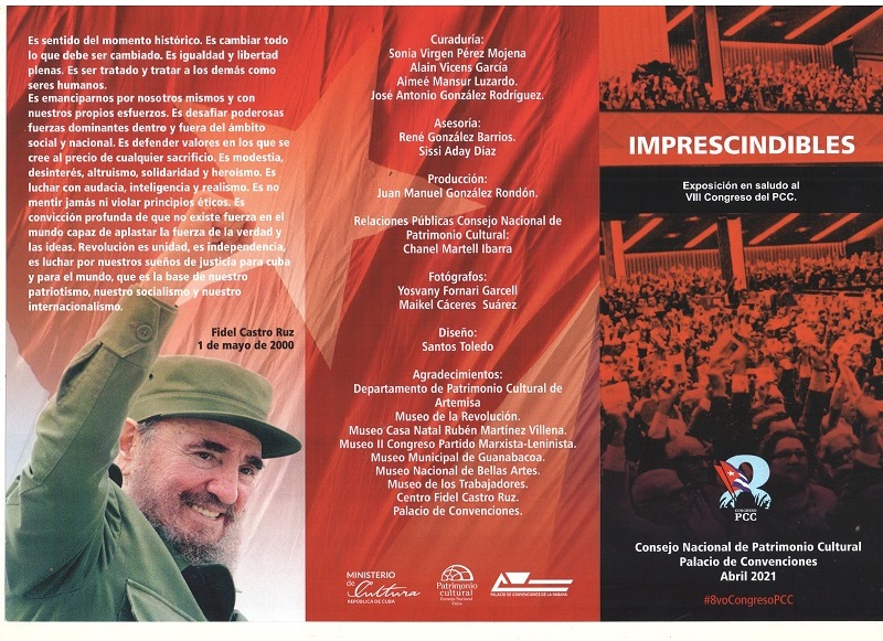 En el contexto del VIII Congreso del Partido Comunista de Cuba (PCC) el Consejo Nacional de Patrimonio Cultural (CNPC) dejó inaugurada este viernes 16 de abril la muestra expositiva Imprescindibles en el Palacio de las Convenciones de La Habana.