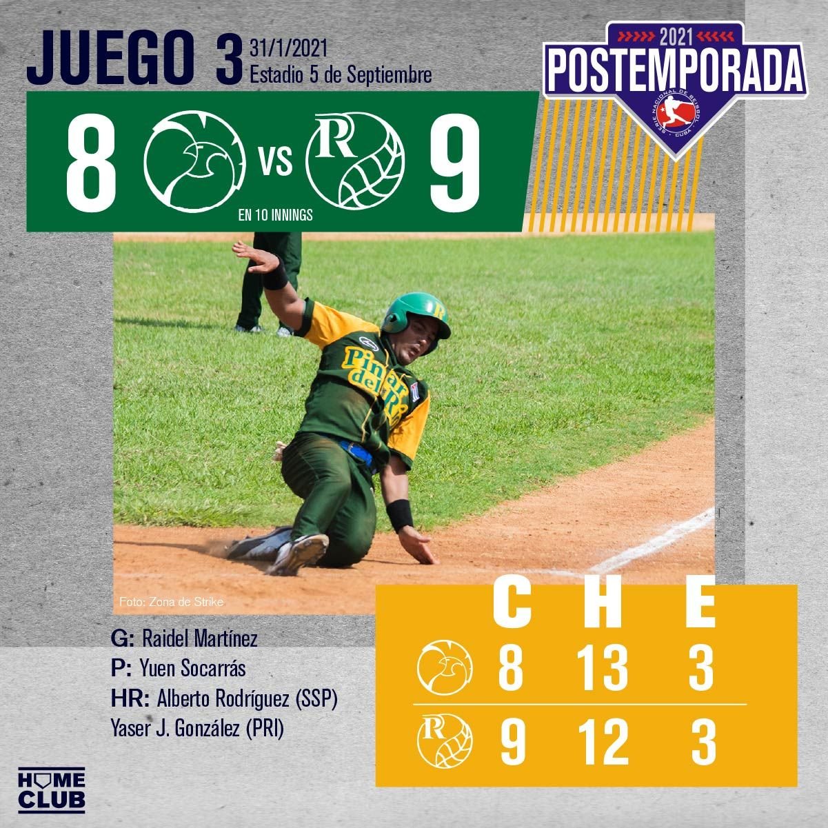 Tampoco se le podía pedir más a Pedro Álvarez, quien venía trabajando desde el cuarto inning cuando los Vegueros se rebelaron ante el abridor José Eduardo Santos. Para muchos, era hora de traer al cerrador Yanieski Duardo o a Yuén Socarrás, si era la idea del colectivo técnico, como hicieron después en una situación más complicada.