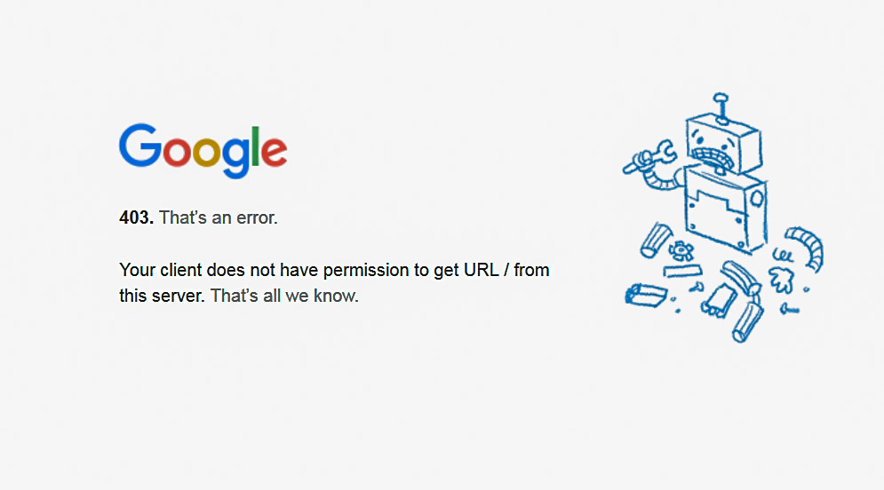 “Lo sentimos su país no tiene permiso para acceder a este sitio” y luego una larga explicación. La imagen pudiera parecer muy ingeniosa y el tono del mensaje muy respetuoso, pero ello no esconde una realidad. Gran parte de los servicios de Google están prohibidos para las direcciones IP de Cuba.