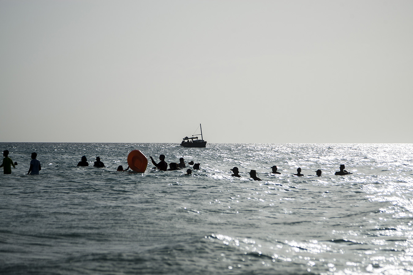 Un grupo de jóvenes juega voleibol, una niña salta mientras otra casi cae de su pequeño salvavidas, casas de campaña para protegerse del sol: las escenas en la playa son infinitas, y si se fotografían desde el agua todavía más.