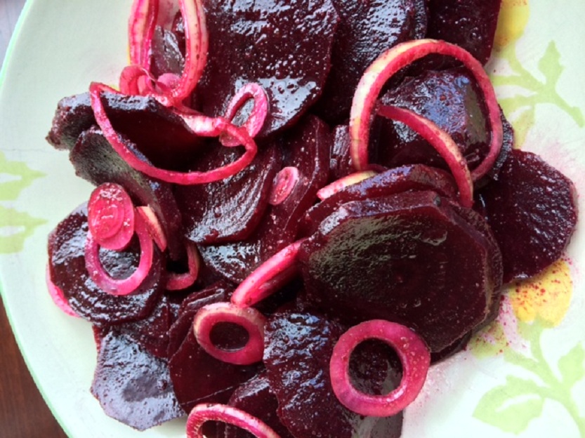 - 2 tazas de ruedas de remolacha hervidas, peladas y cortadas