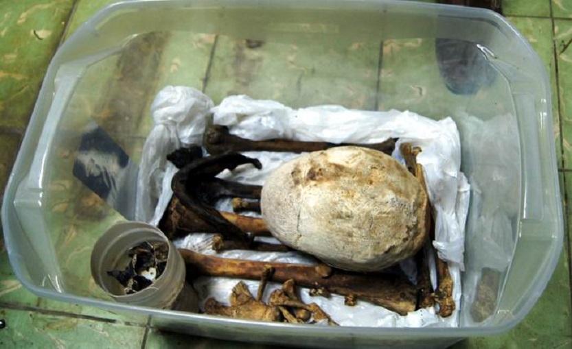 Restos óseos de Luisa Maria Garcia Selló, quien fuese momificada en España en los inicios del siglo XIX con la finalidad de devolverla a su ciudad natal (Foto del autor).