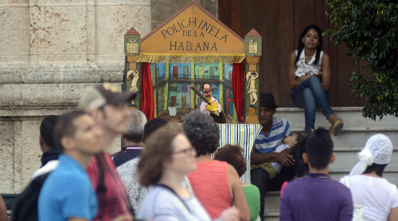 Resulta fácil encontrar al grupo de teatro guiñol “Polichinela en La Habana”; solo basta distinguir las risas y carcajadas que se reúnen todos los fines de semana en la Plaza de San Francisco de Asís, en La Habana Vieja.