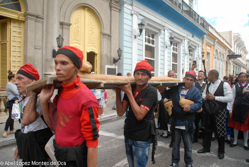 Los participantes en el desfile cargaban un pan gigante que luego se repartía entre los asistentes como gesto de buena voluntad. (Foto:Abel López Montes de Oca/ radio26.cu).