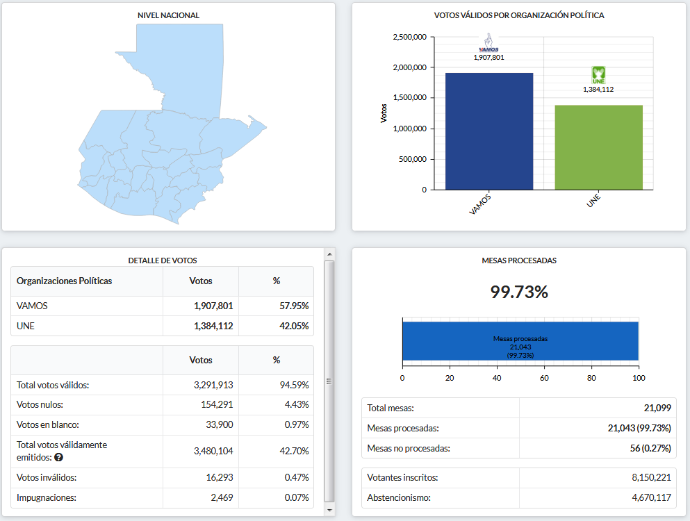 Resultados Preliminares de Elecciones en Guatemala (Imagen: Tribunal Supremo Electoral de Guatemala)
