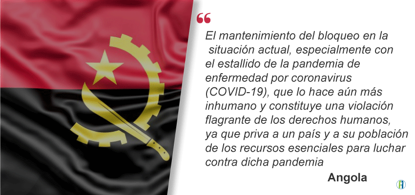 Angola, país con estrechos vínculos con el nuestro, expresó en el informe su solidaridad con Cuba y su rechazo al bloqueo. Manifestó su preocupación por el hecho de que ese a pesar de las múltiples resoluciones aprobadas en la ONU continuara vigente.