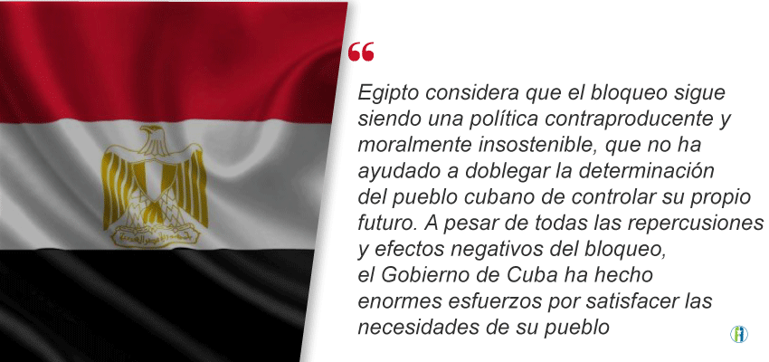 “El bloqueo es un anacronismo de una época ya pasada y debe levantarse”, expresó la República Árabe de Egipto.
