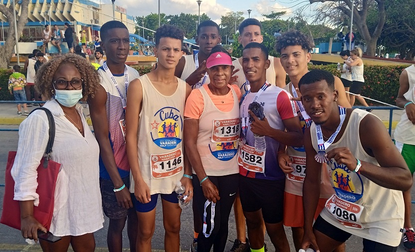 Ana Fidelia Quirós junto a un grupo de jóvenes que corrieron los 10 kms. (Duanys Hernández/Cubahora)