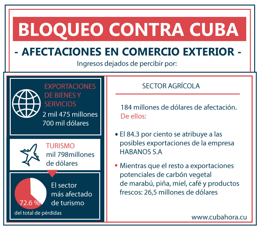 Limita, además, la adquisición de divisas mediante exportaciones, esencial para mejorar la economía cubana y comerciar con el resto del mundo.