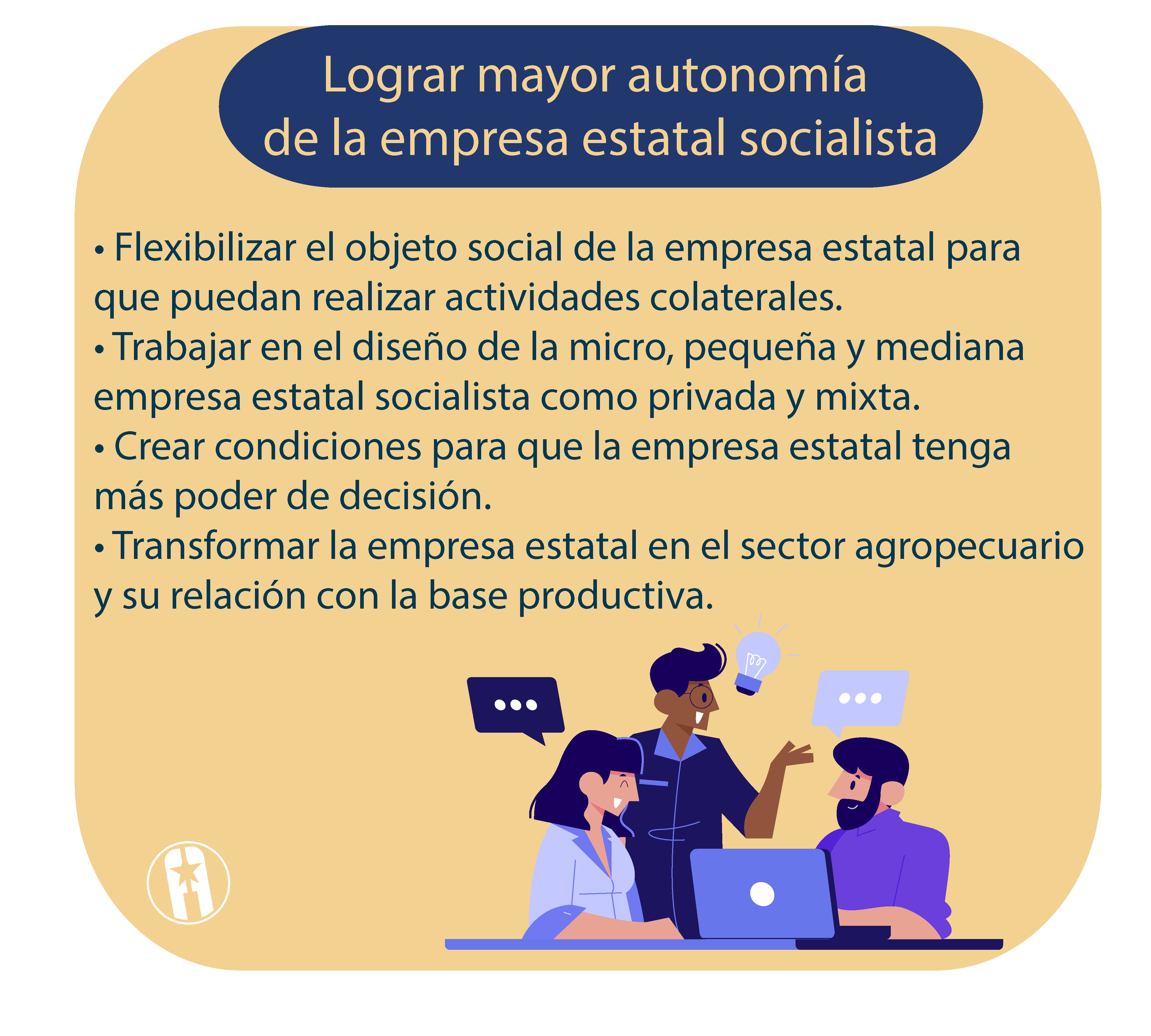 Como establece la Constitución de la República, la empresa estatal socialista constituye el sujeto principal de la economía nacional. El artículo 27 de la Ley de Leyes le otorga la potestad para disponer de autonomía tanto en su administración como en su gestión, puesto que desempeña el papel principal en la producción de bienes y servicios, así como cumplir con sus responsabilidades sociales.