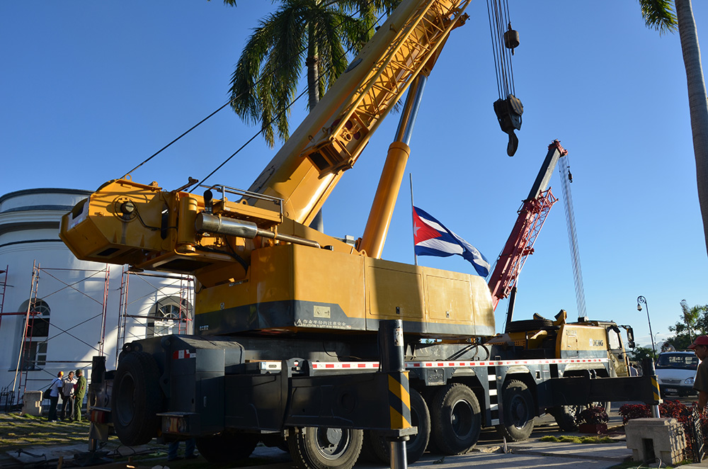 Equipos de izaje de la empresa Cubiza en el cementerio Santa Ifigenia (Foto: Cortesía del entrevistado).