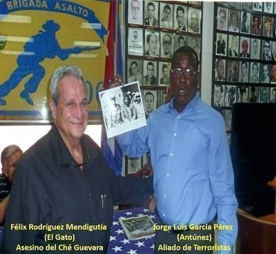 Por eso no es extraño haberlo visto en una foto junto al asesino del Che, Félix Rodríguez Mandigutía, en la sede de la Brigada Mercenaria 2506, y enarbolando una foto de aquellos momentos finales del Guerrillero Heroico: