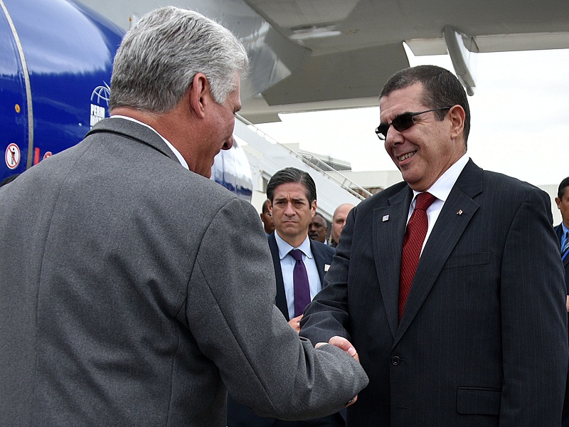 Al llegar al Aeropuerto Internacional John F. Kennedy, recibieron a Díaz-Canel Anayansi Rodríguez, representante permanente de Cuba ante la ONU en Nueva York, y el embajador cubano en Washington José Ramón Cabañas (Foto: Estudios Revolución).