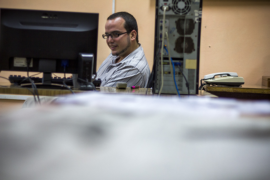No hay un día en que Sergio Alejandro Gómez llegue a su casa antes de las 11 de la noche. Con menos de 30 años dirige la redacción internacional del diario Granma, por lo que no debe ser tarea fácil pensar, jerarquizar y organizar el contenido que sobre otros países presenta el periódico.