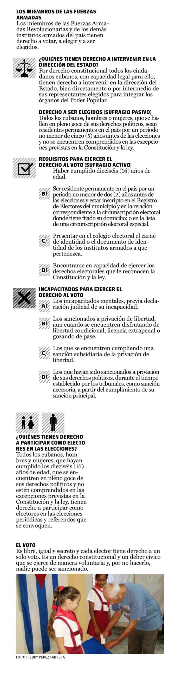 De una manera más gráfica para facilitar su comprensión, Granma ofrecerá a sus lectores, todos los jueves y por varias semanas, algunos detalles y precisiones sobre el proceso electoral, cuya convocatoria fue librada por el Consejo de Estado el pasado 14 de junio. Para este empeño nos hemos apoyado básicamente en la Ley 72, Ley Electoral, del 29 de octubre de 1992. También contamos con los especialistas de la Comisión Electoral Nacional (CEN)