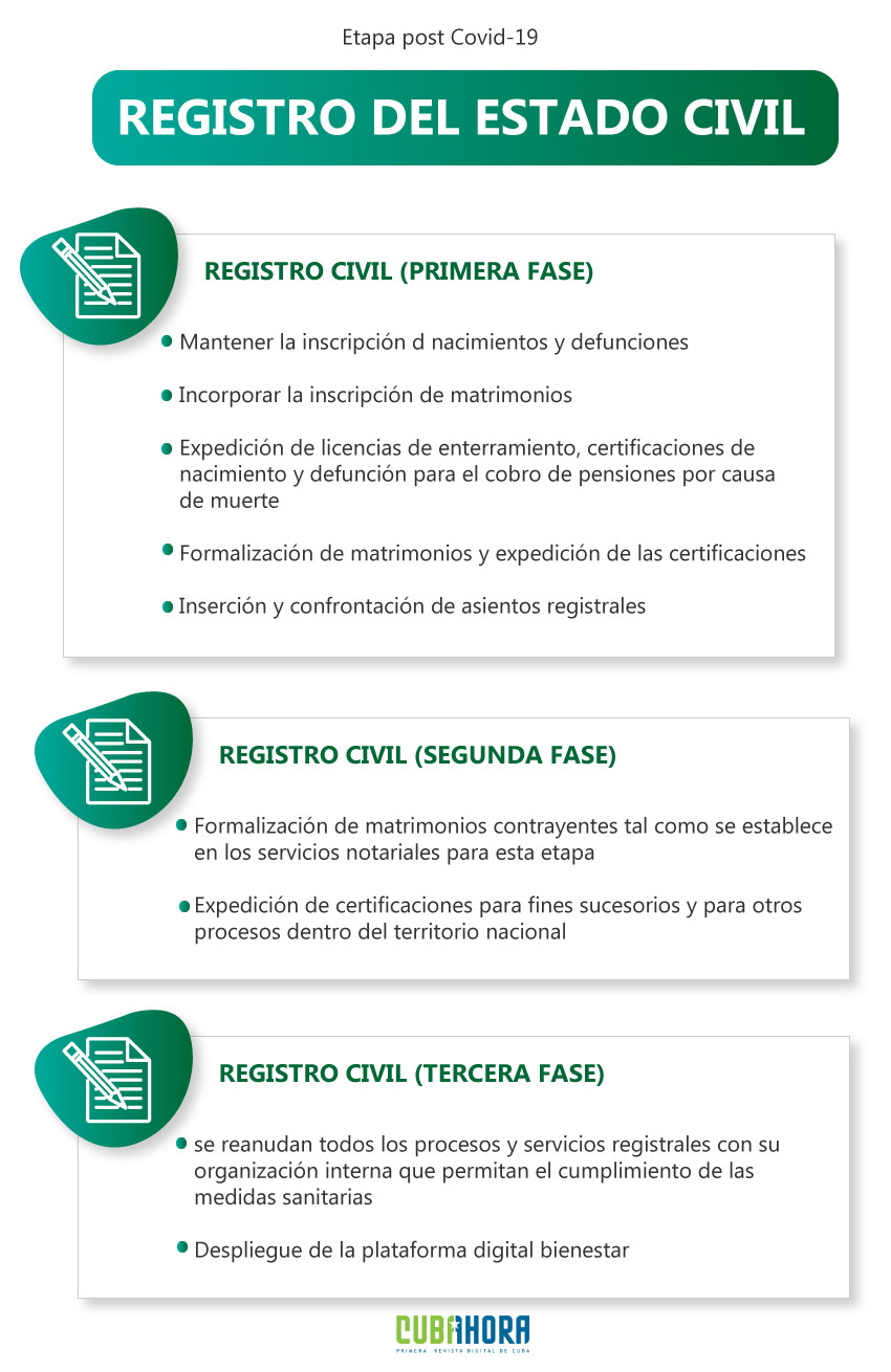 De igual forma aseguró que se cumplirán las tres fases decretadas por la máxima autoridad del país, por tipos de servicios, de forma tal que se pueda dar solución a todos los trámites que necesita la población.
