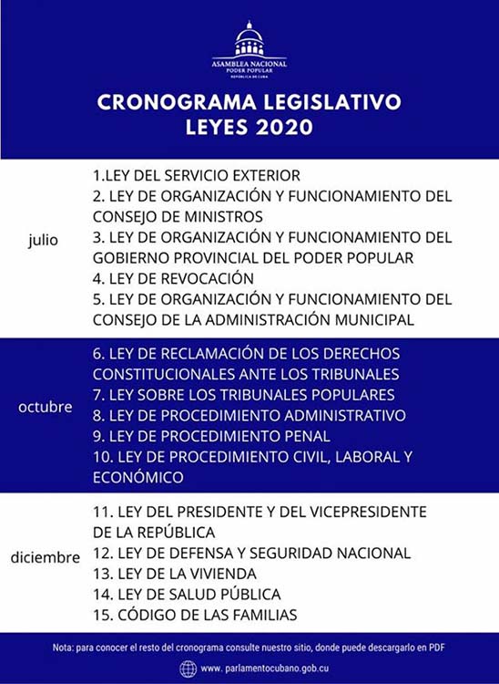 Es necesario aclarar que dicho cronograma legislativo está sujeto a cambios debido a la actual situación epidemiológica provacada por la COVID-19 (Infografía: Cubahora)