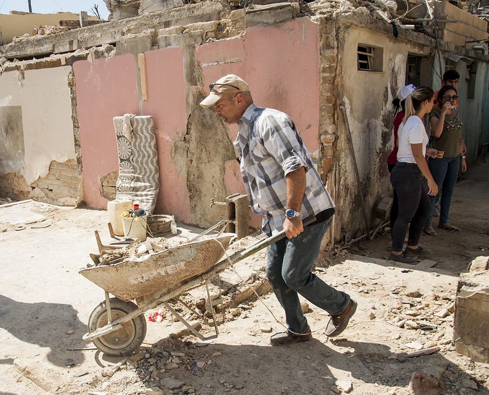 Desde un pasillo, el Héroe de la República, Gerardo Hernández, empuja una carretilla con escombros. Apenas se le puede reconocer entre tantas personas. Ha hecho una parada para saludarnos, sin soltar el vagón. Lleva una camisa de mangas largas y una gorra. Ya estuvo aquí una vez, acompañando a sus estudiantes. Comenzaron por esta zona porque era de las que más ayuda necesitaba. La primera noche, cuando terminaron, llamó a su tocayo Gerardo Alfonso, el trovador, para alimentar el espíritu de los vecinos. Él aceptó, y la noche se convirtió en una descarga de “Gerardos” que devolvió la sonrisa a los que cantaban bajo la luz de los celulares. “La gente sabe que la ayuda material resuelve un poco, pero la ayuda del corazón es importante”, nos dijo antes de seguir.