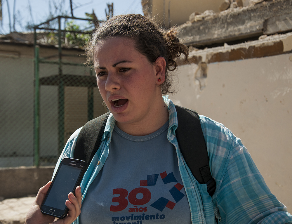 Entre la muchedumbre, estudiantes de medicina parecen moverse en silencio. Tocan todas y cada una de las puertas que están cerradas, preguntan a los vecinos que están sentados en las aceras, en los contenes o entre los escombros. Samuel López estudia imageneología y esta semana ha estado haciendo pesquisas. “Chequeamos a los diabéticos, los hipertensos, las embarazadas y damos un informe a la doctora del policlínico. Nos interesamos también por aquellas personas que han perdido el tarjetón de los medicamentos, si alguien tiene alguna lesión, fiebre o algún malestar”, esa es también nuestra forma de ayudar.