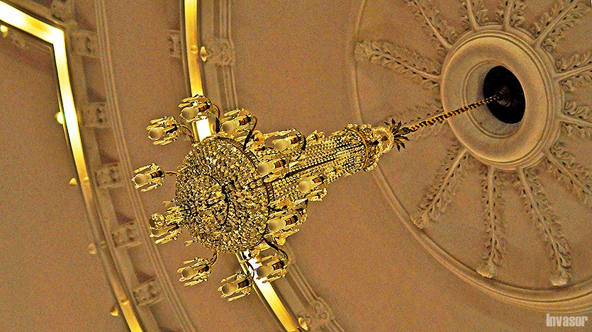 Florón en la parte central del techo del Teatro Principal donde se encuentra suspendida la lámpara.