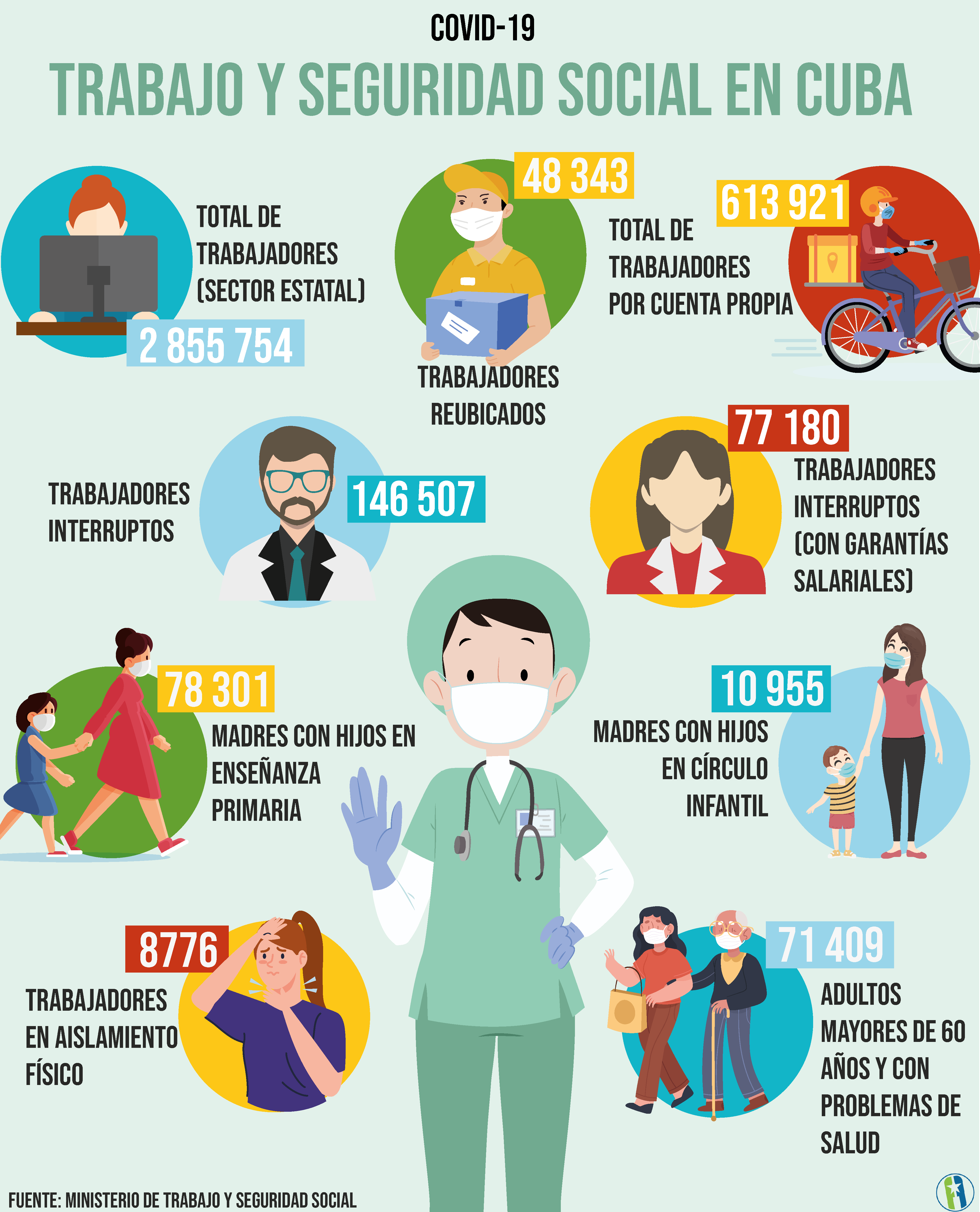 En el país, la evolución de la COVID-19 conllevó a tomar desde un inicio, medidas que garantizaran la seguridad de los trabajadores y además protegieran sus derechos sociales, laborales y salariales. De esta manera, algunas personas continuaron asistiendo al trabajo cumpliendo con las medidas higiénico-sanitarias, mientras otras se encontraban con el teletrabajo, fueron reubicadas o se declararon interruptas.