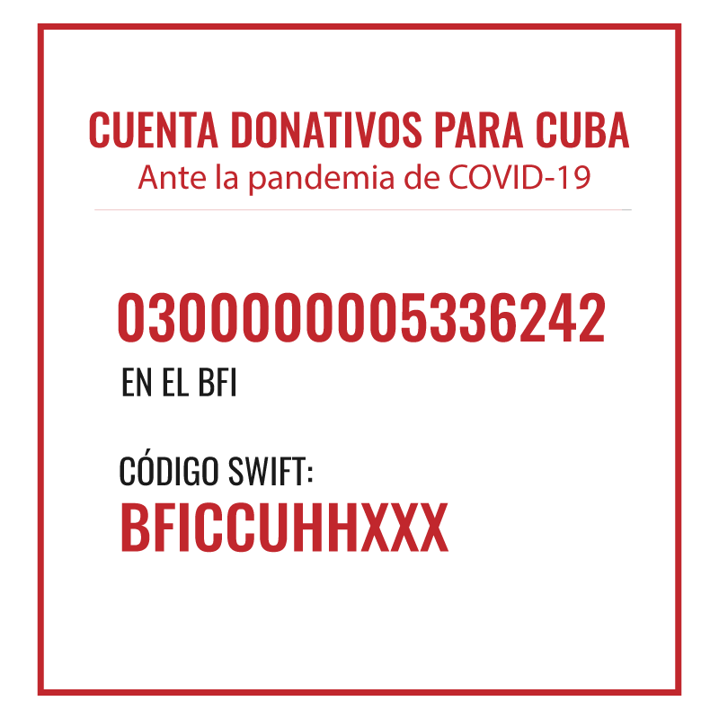 Desde noviembre del pasado año funciona una cuenta bancaria para recibir donativos monetarios. Además, las dudas sobre el sobre el proceso se pueden esclarecer mediante el correo donacionescuba@mincex.gob.cu.