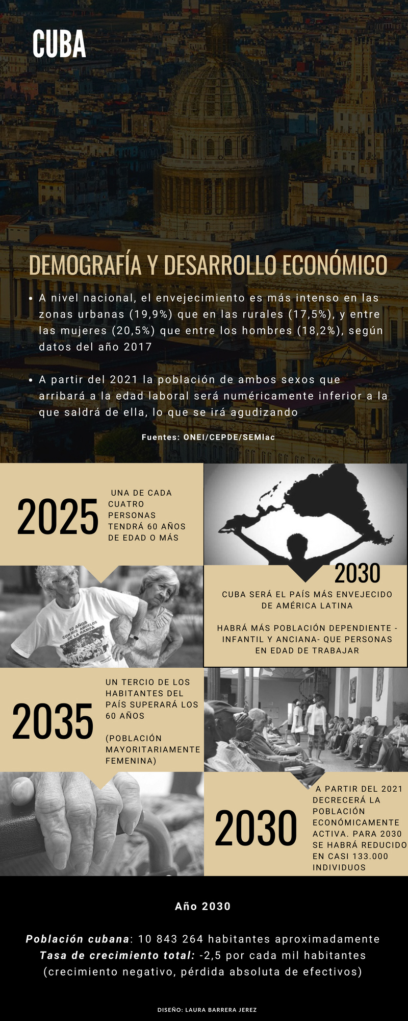 “El cambio de la población cubana no debe continuar siendo percibido como un problema o un reto, sino que debe abordarse en un marco de interacción con el desarrollo económico y social. Por lo tanto, nada de lo que suceda en términos de política de hoy es compatible con una visión fragmentada en lo que se refiere a los aspectos demográficos. Es factible que se diseñen o implementen acciones en este sentido, pero ellas deben ser manejadas desde la perspectiva de su impacto sistémico en la dinámica de la población”, aseguran Grisell Rodríguez Gómez y Juan Carlos Albizu-Campos Espiñeira, especialistas del Centro de Estudios Demográficos (CEDEM) de la Universidad de La Habana, en su artículo “La población de Cuba hoy” (publicado en 2015).