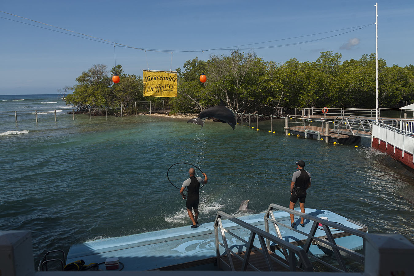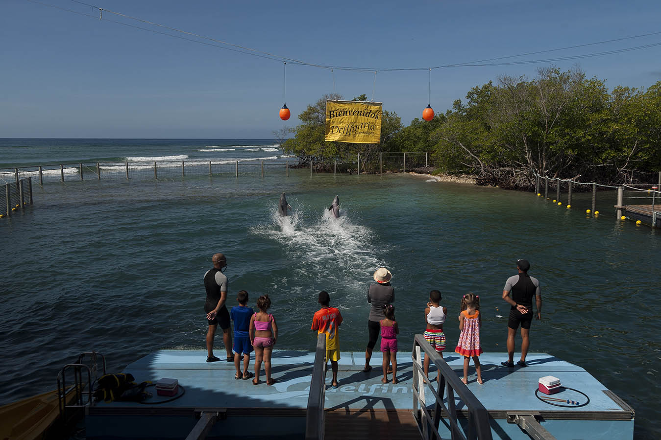 Perla y Oceanic son las estrellas del delfinario de Cienfuegos: dos ejemplares únicos que cautivan en cada espectáculo a sus visitantes. Risas, acción, mensajes para proteger al medio ambiente y mucha interacción con el público son algunas características del show.