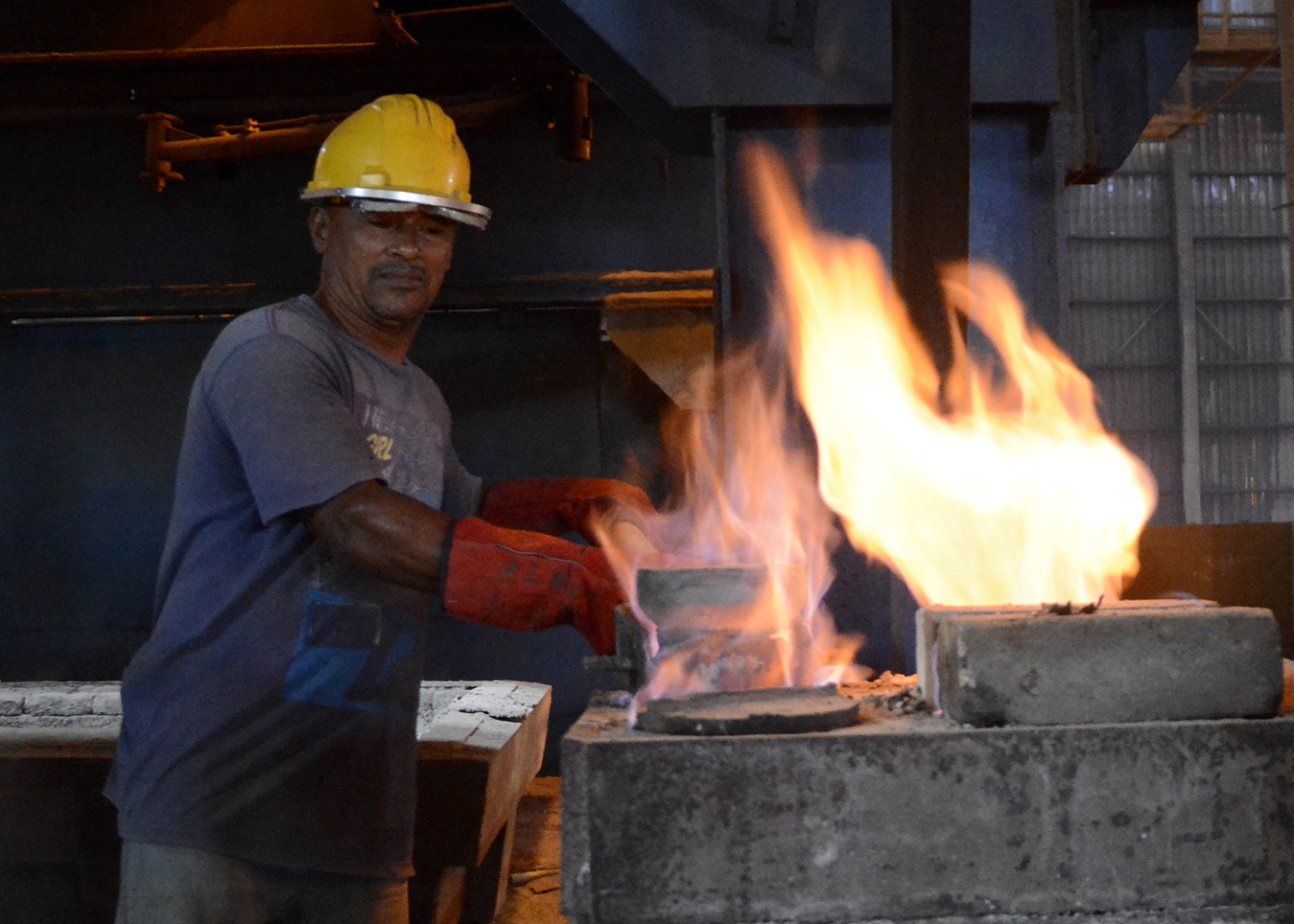 Desde que se entra a la fábrica es inevitable la sensación de que en cuestiones de pocos segundos te abraza el intenso calor, tal parece como si estuvieras en las cercanías de algún volcán o en otro planeta más cercano al Sol; y es que entre 40 y 50 grados Celsius de temperaturas como promedio, y en ocasiones más, es que laboran sin descanso los trabajadores de la Empresa de Acero Inoxidable (Acinox) Las Tunas.