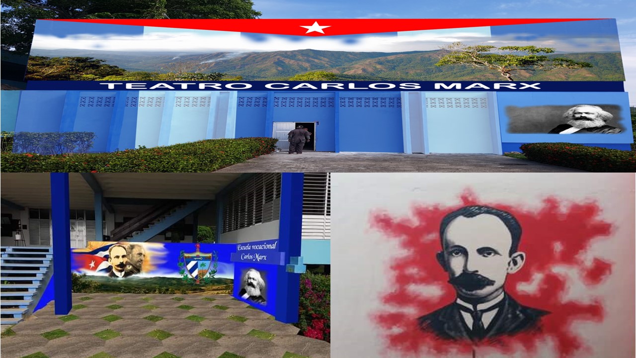 Murales que engalanarán el teatro, la entrada y la sala de conferencias del IPVCE Carlos Marx (Imagen / Jessica Mesa)