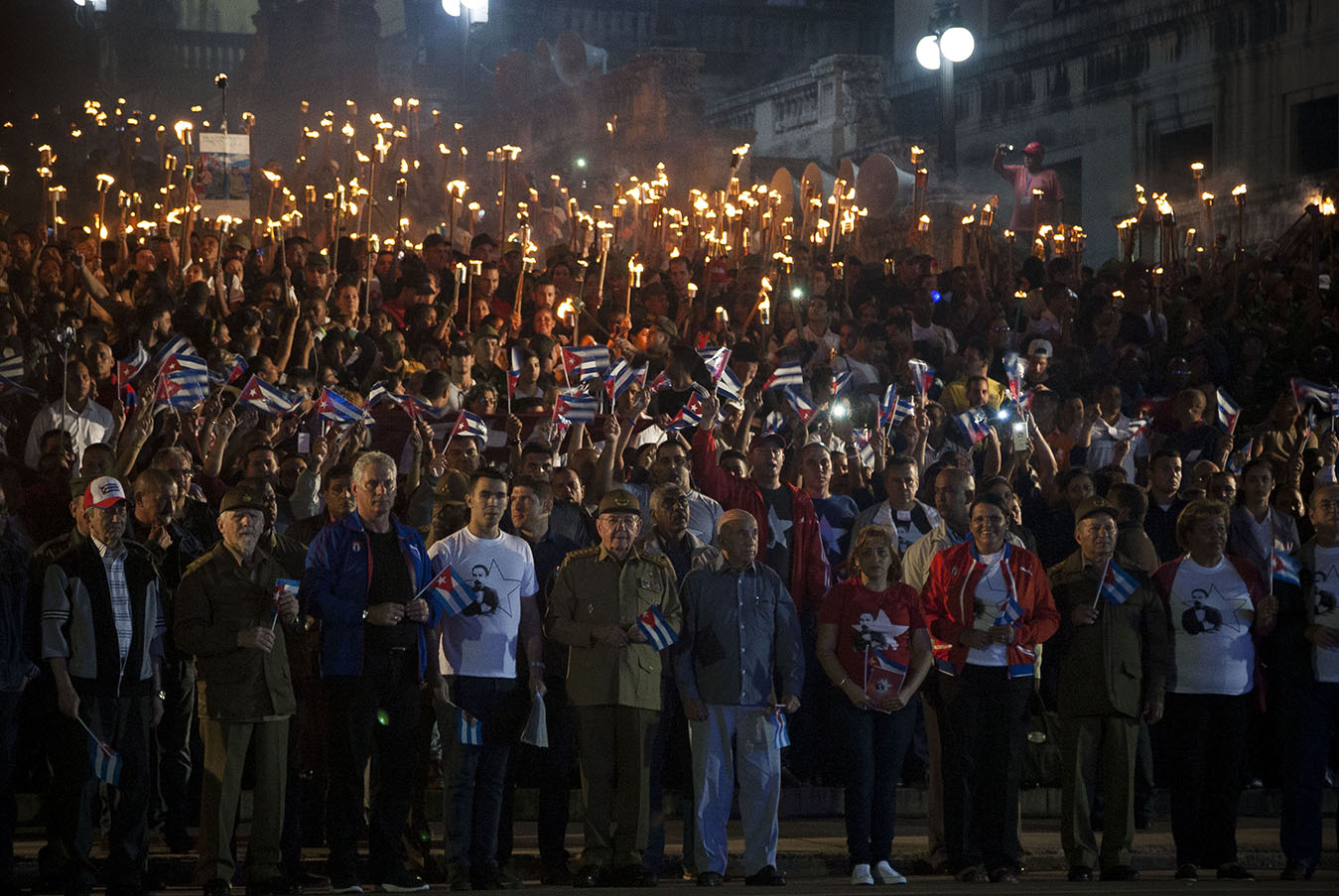 En la escalinata de la Universidad de La Habana estuvo el presidente cubano Raúl Castro: junto a él marchó la dirección del país y miles de jóvenes que cantaban: “Yo soy Fidel, yo soy Martí”.
