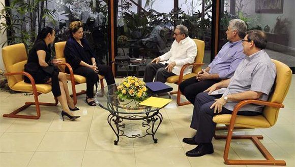 Encuentro de Raúl Catsro y Díaz-Canel con Dilma Roussef, al que también asistió el canciller cubano (Foto: Estudios Revolución).